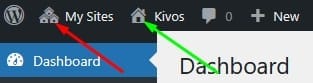 Grön pil – Ikonen och namnet är din hemsida. Är det inte en multisite så ligger denna ikon och namnet där den röda pilen är.